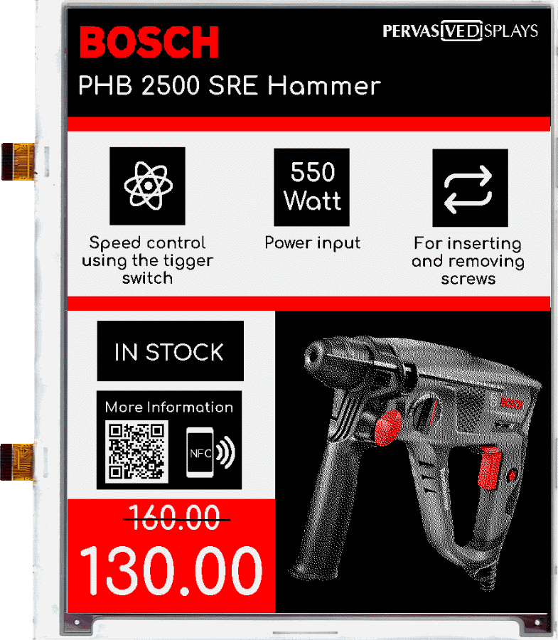 | Spectra Red (EoL) | Zero above | black, white, red (BWR) | 0°C to +40°C | -25°C to +60°C | 3-colors pigments inside. Taking longer time to complete a refresh. |
