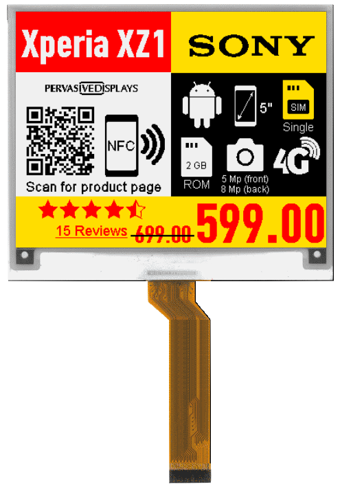 | Spectra Red (EoL) | Zero above | black, white, red (BWR) | 0°C to +40°C | -25°C to +60°C | 3-colors pigments inside. Taking longer time to complete a refresh. |